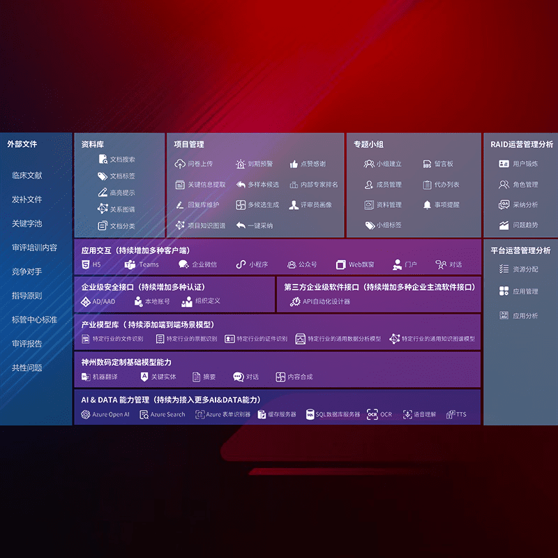 医疗器械产品上市前,,,,要熟悉严格与繁复评审标准,,,整理分析监管机构指导文件中的海量信息。。。。企业急需一个智能化解决方案,,提升知识管理效率,,提高评审通过率,,以提升其市场竞争力。。